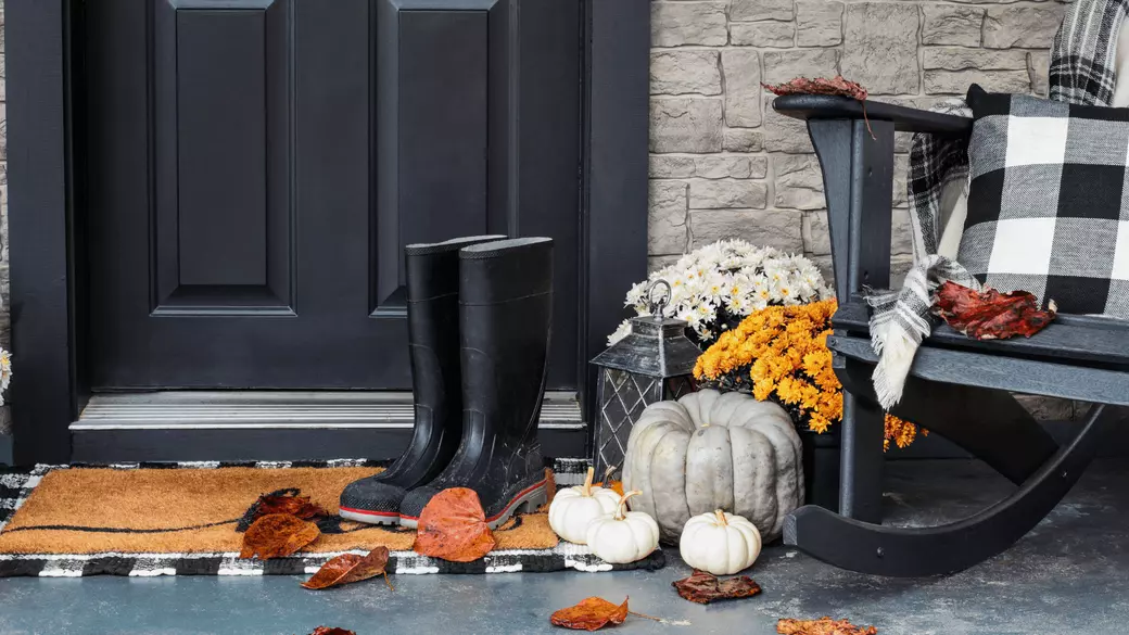 Before you start decorating, give your porch a quick sweep (literally). Clear out summer plants, rinse off the doormat, and tidy up. A fresh, uncluttered space makes even simple décor feel intentional.